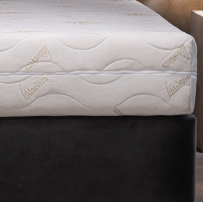 Model ALOE VERA to gwarancja komfortowego snu z jednoczesną pielęgnacją skóry. Takie rozwiązanie jest możliwe dzięki innowacyjnej metodzie połączenia elastycznej dzianiny z olejkami aloesowymi o gramaturze aż 200 gr/m2. Zawiera wyciąg z 150-160 czynnych związków roślinnych dlatego zapewnia nam ochronę i regenerację skóry podczas naszego snu. Stworzony dla osób z delikatną i wrażliwą skórą .